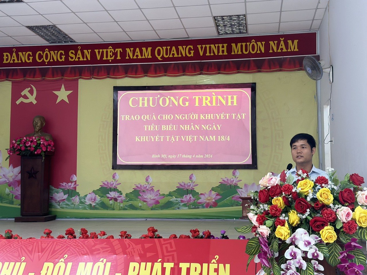 Sáng ngày 17/4/2024 UBND xã Bình Mỹ tổ chức trao tặng 48 phần quà huyện gồm quà và tiền mặt trị giá 500.000đ/ phần nhân ngày người khuyết tật Việt Nam 18/4.