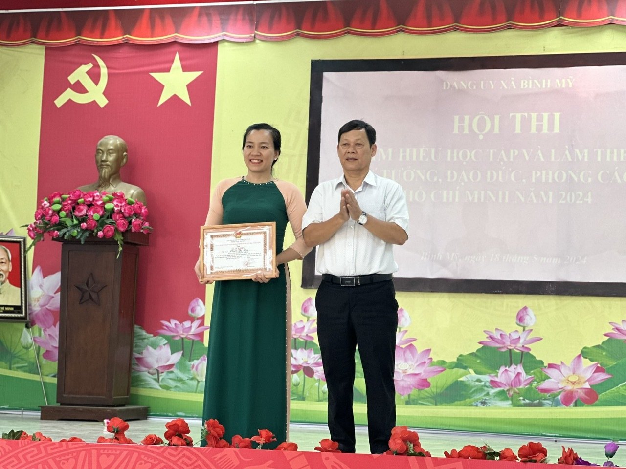 Nhân kỷ niệm 134 năm Ngày sinh Chủ tịch Hồ Chí Minh (19/5/1890 - 19/5/2024), ngày 18/5/2024, Đảng ủy xã Bình Mỹ tổ chức Hội nghị Sơ kết việc thực hiện Kết luận số 01-KL/TW về tiếp tục thực hiện Chỉ thị số 05-CT/TW của Bộ Chính trị (khóa XII) về đẩy mạnh “học tập và làm theo tư tưởng, đạo đức, phong cách Hồ Chí Minh” và sinh hoạt chuyên đề năm 2024.
