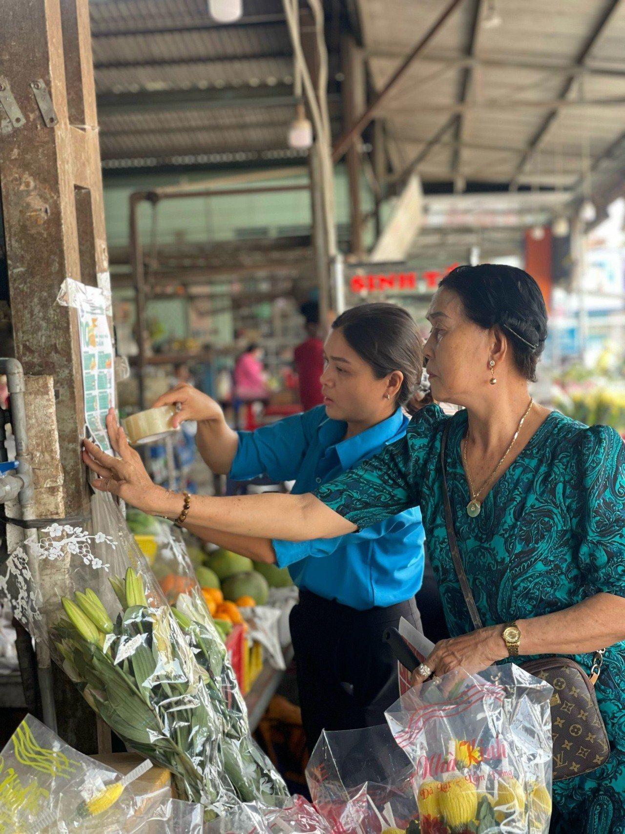 Tổ ra quân cung cấp một số thông tin cho hội viên phụ nữ, hộ kinh doanh thực phẩm chợ Bình Mỹ kiến thức về VSATTP, qua đó, nêu cao ý thức trách nhiệm của hộ kinh doanh, hội viên, phụ nữ đối với công tác giữ gìn vệ sinh an toàn thực phẩm; chế biến thực phẩm an toàn và phòng chống các biểu hiện sản xuất, chế biến, vận chuyển thực phẩm bẩn nhằm bảo vệ sức khỏe bản thân, gia đình và cộng đồng. Và nhằm đẩy mạnh và phát huy hiệu quả cuộc vận động “xây dựng gia đình 5 không 3 sạch” gắn với hoạt động của phong trào toàn dân xây dựng đời sống văn hóa ở khu dân cư và xây dựng nông thôn mới nâng cao của xã.