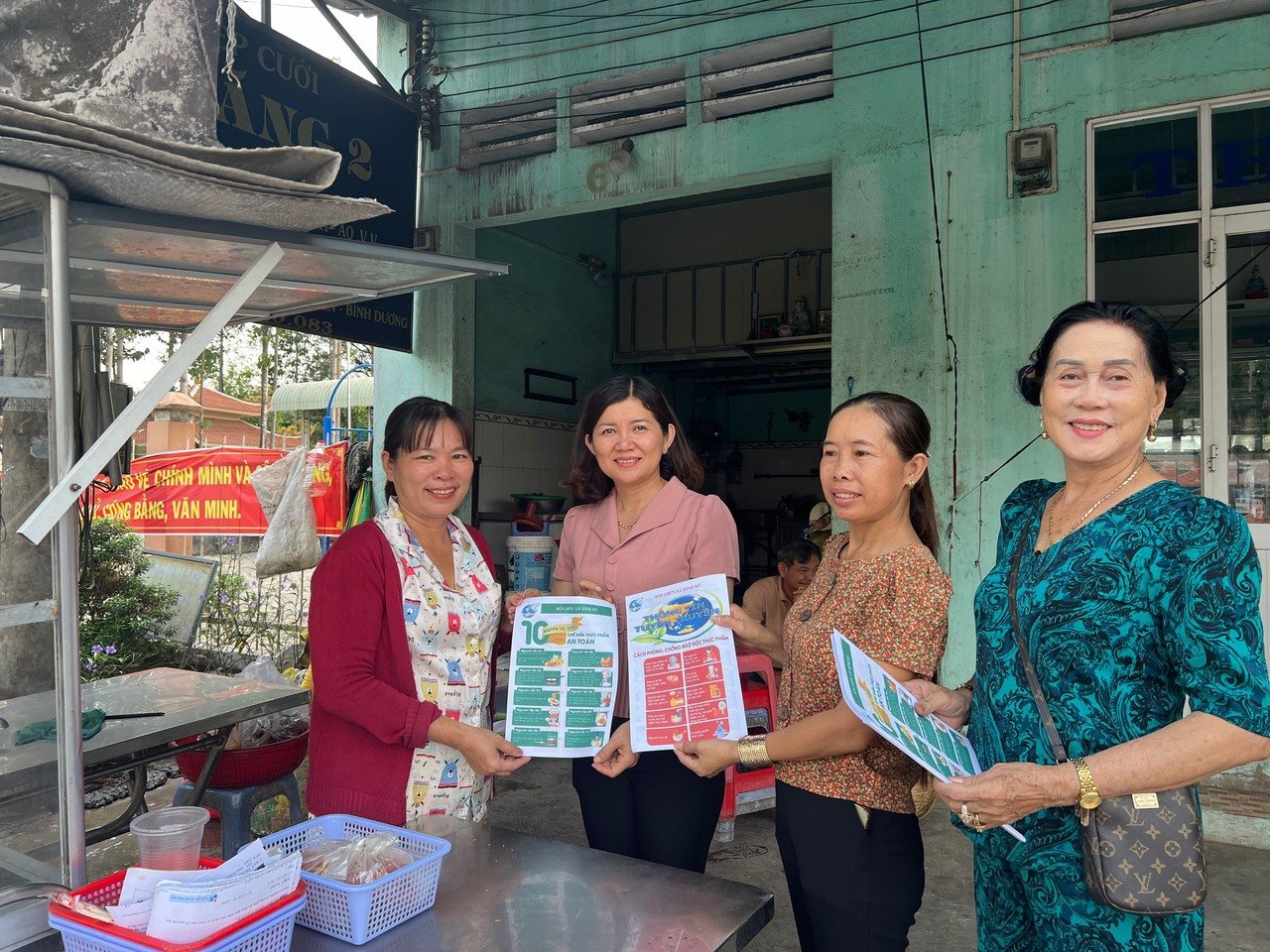 Hội LHPN xã đã phát 50 tờ rơi tuyên truyền vấn đề an toàn thực phẩm, các nguyên tắc trong chế biến thực phẩm an toàn; cách phòng, chống ngộ độc thực phẩm đến hộ dân, hộ kinh doanh, hội viên, phụ nữ tại khu vực Chợ Bình Mỹ để cung cấp một số thông tin cần thiết trong việc đảm bảo vệ sinh an toàn thực phẩm; chế biến, sử dụng và bảo quản thực phẩm an toàn…để phòng, chống ngộ độc liên quan đến vấn đề thực phẩm.