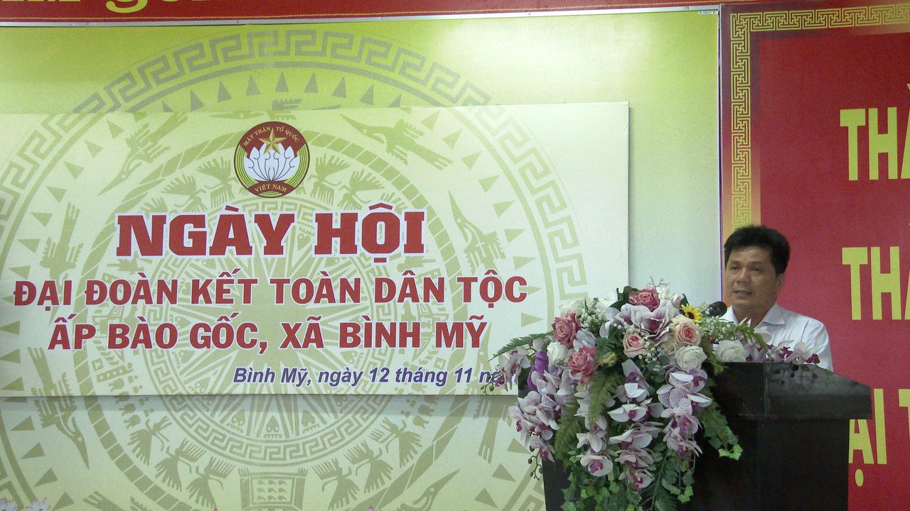 Chiều ngày 12/11, ấp Bào Gốc, xã Bình Mỹ tổ chức Ngày hội Đại đoàn kết toàn dân tộc năm 2023. Dự ngày hội có ông Nguyễn Thành Thường-Phó Bí thư huyện ủy-Chủ tịch UBND huyện, ông Nguyễn Văn Thuận-Huyện ủy viên-Phó Chủ tịch UBND huyện, bà Ngô Thị Hồng Vân-Trưởng ban Kinh tế HĐND huyện, lãnh đạo xã Bình Mỹ, chi bộ, ban Điều hành, ban công tác Mặt trận cùng nhân dân ấp Bào Gốc, xã Bình Mỹ.