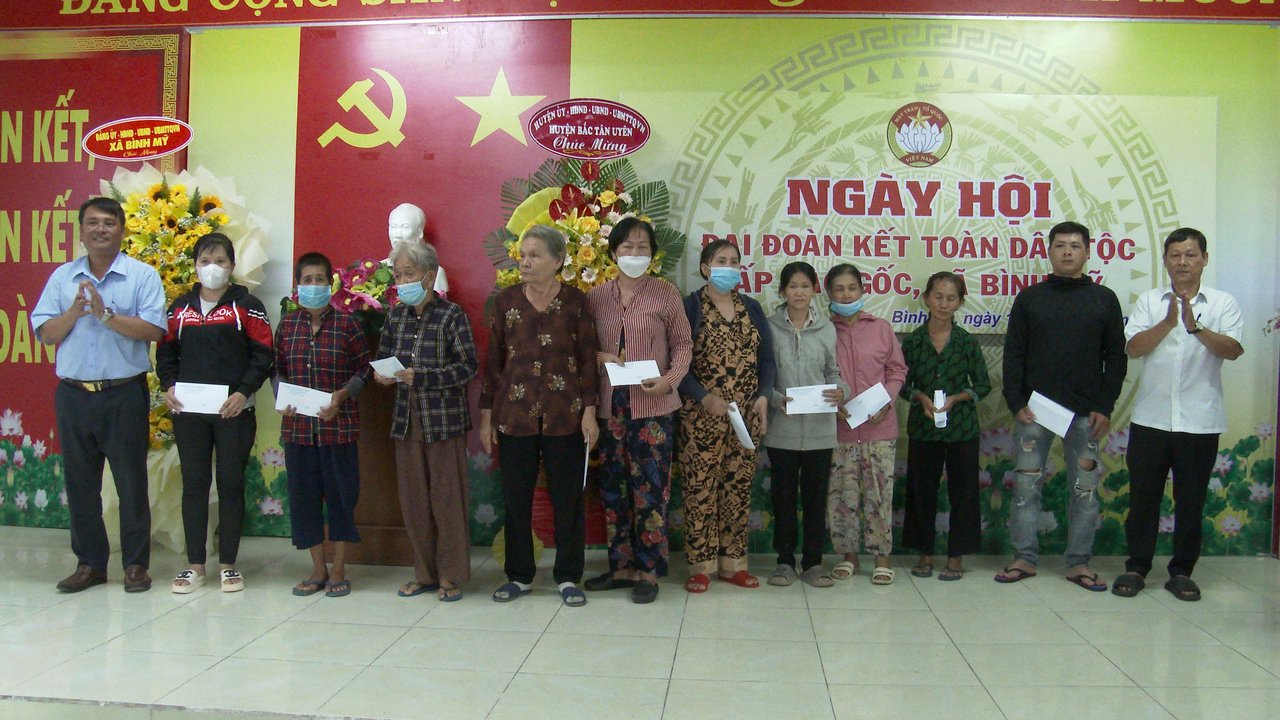 Dịp này, lãnh đạo huyện đã trao tặng 10 phần quà cho hộ nghèo, hộ khó khăn trên địa bàn xã, mỗi phần trị giá 1 triệu đồng, lãnh đạo xã Bình Mỹ trao tặng 10 phần quà cho hộ nghèo, hộ có hoàn cảnh khó khăn trên địa bàn xã mỗi phần trị giá 500 ngàn đồng. UBND xã Bình Mỹ tuyên dương khen thưởng 10 hộ gia đình đạt gia đình văn hóa tiêu biểu 3 năm liền giai đoạn 2021-2023.