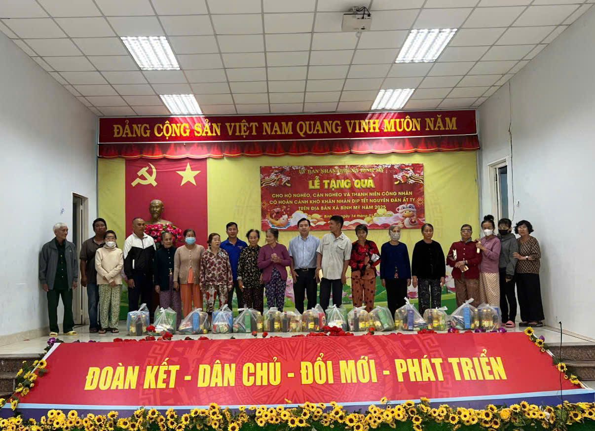 Trao tặng quà tết cho hộ nghèo, hộ cận nghèo, hộ khó khăn và thanh niên công nhân nhân diệp tết Nguyên đán Ất Tỵ 2025.