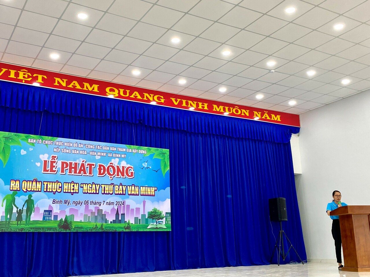 Sáng 06/7/2024, Ban tổ chức Đề án công tác dân vận tham gia xây dựng nếp sống văn hóa - văn minh, xã Bình Mỹ tổ chức ra quân hưởng ứng “Ngày thứ 7 văn minh”, năm 2024.